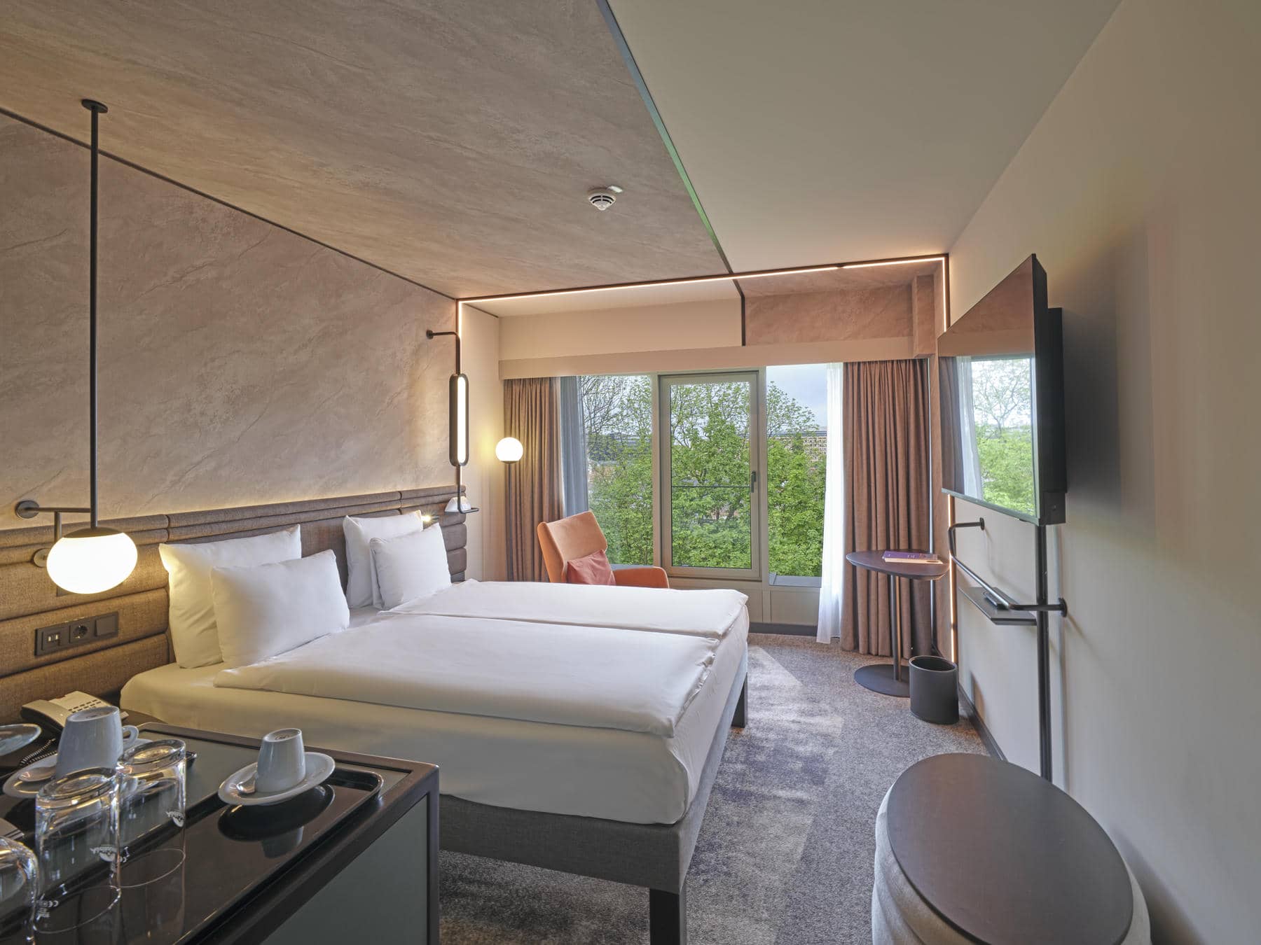 Klares Design, viel Komfort: Dieses Zimmer im neuen Gebäudeteil ist ideal zum Ankommen, Abschalten oder konzentrierten Arbeiten. Für Alleinreisende, Paare oder kurze Business-Trips – mit allem, was zählt.